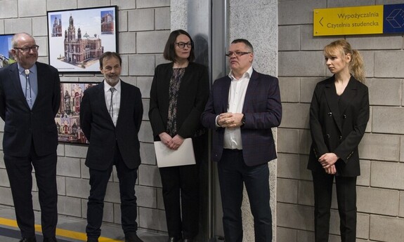 The most numerous group were, of course, the employees of Lublin University of Technology - Prof. Wojciech Franus, vice-rector for science, Dr. Edyta Łukasik, vice-dean for student affairs at the Faculty of Electrical Engineering and Computer Science, and Dr. Katarzyna Weinper, director of the library (host of the exhibition).