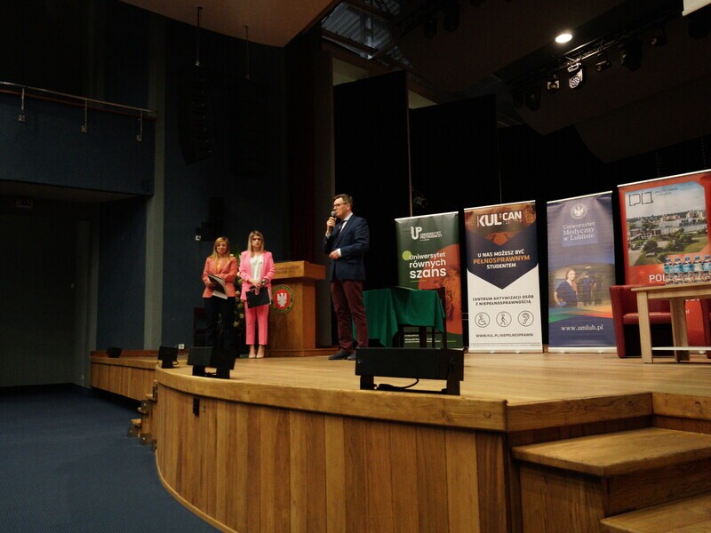 Prof. Zbigniew Pater, rector of Lublin University of Technology, spoke on behalf of the Union of Lublin Universities: – We cooperate intensively in many different fields and the synergy effect is visible. Synergy, which means that the impact of a group is greater than the sum of the effects of the activities of its individual members. (...) The academic community consists not only of rectors or vice-rectors, but above all thousands of employees and even greater numbers of students. Among this huge number, we have some people with disabilities and we are glad that today we are starting to integrate with their interests in mind. I hope that during today's event as many restrictions as possible will be identified and we will plan such solutions that we will then be able to implement.