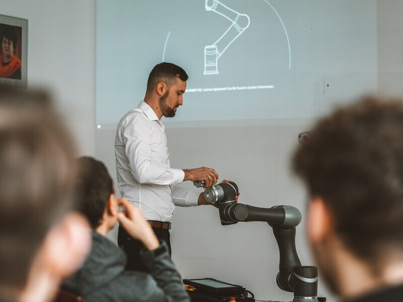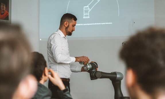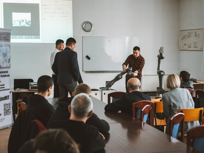 On January 23, 2024, at the Faculty of Mathematics and Information Technology, we had the pleasure of hosting representatives of TFM Robotics as well as students from the Transport and Communication School Complex in Lublin. This event allowed us to explore the secrets of cobots, i.e. collaborative robots.