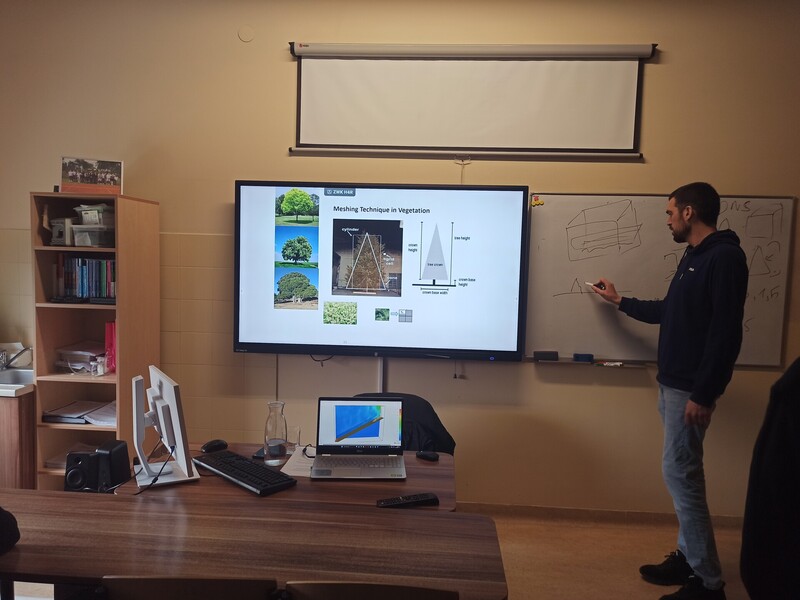 Staż naukowy P. Soummar (drugi semestr roku akademickiego 2023/24) jest realizowany w celu ustanowienia silnego partnerstwa między uniwersytetami, ułatwienia mobilności w ramach wymiany i wspólnych badań naukowych oraz osiągnięcia wspólnych efektów prac badawczych. Pan Soummar realizuje badania w KTMPiNL WM pod opieką merytoryczną dr inż. Michała Jan Gęcy. Prace nad weryfikacją eksperymentalną warunków powstawania, przebiegu i czasu trwania pożarów roślin i ich szczątków (na przykładzie ściernisk) w zależności od nachylenia terenu, kierunku i prędkości wiatru oraz wilgotności podłoża są przyczynkiem do budowy stanowiska badawczego i weryfikacji badań modelowych w symulowanych warunkach rzeczywistych na PL. Doktorant jest ekspertem w modelowaniu pożarów w programie Fire Dynamics Simulator.