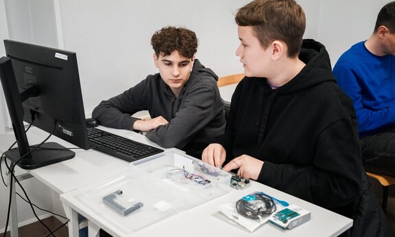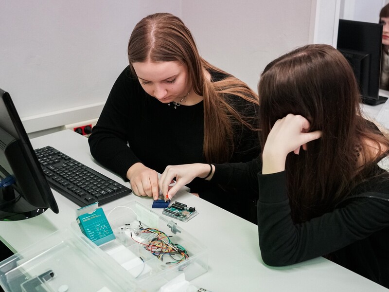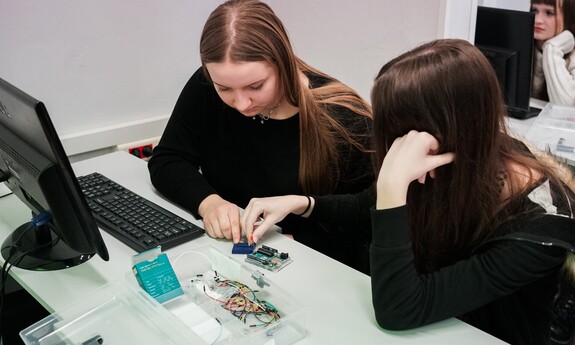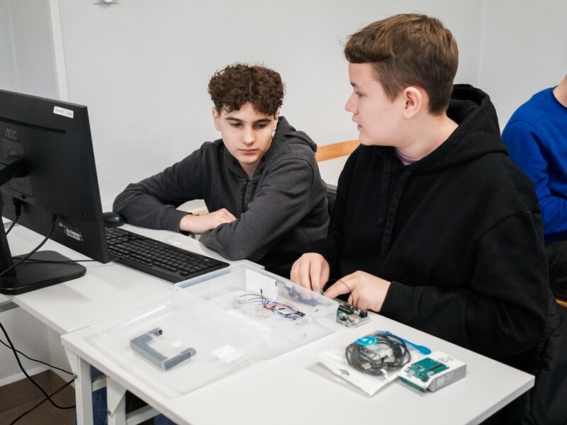 Martyna Głębocka, uczennica siódmej klasy SP nr 18, lubi pracę z komputerem: – Musimy tutaj podłączać różne rzeczy do płytki. To zadanie jest trudne, ale kiedy ktoś pokazuje, co zrobić, to wszystko staje się prostsze i naprawdę fajne.