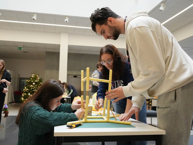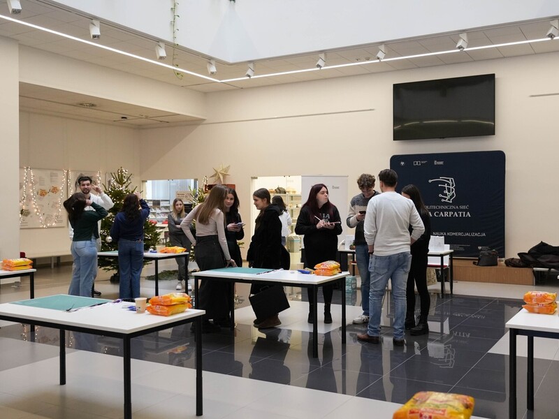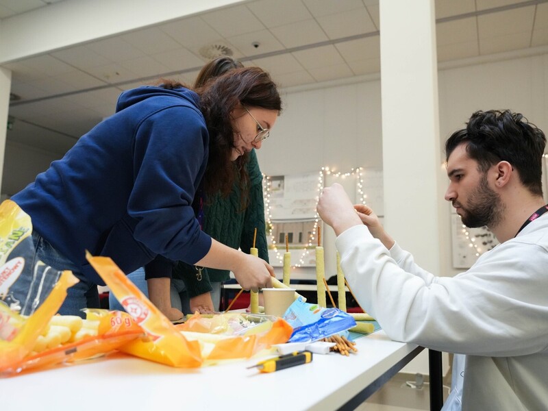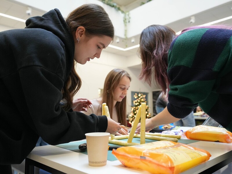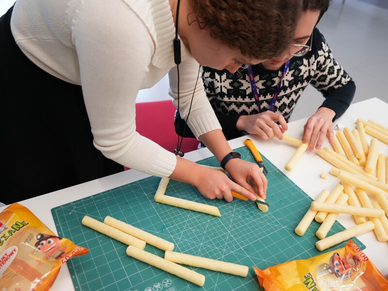 – Musieliśmy przede wszystkim rozważyć zużycie chrupek względem paluszków. Paluszki są mniej wytrzymałe, dlatego skupiliśmy się na tym, by uzyskać jak najwyższą konstrukcję, która się nie połamie – mówił Przemysław Bilski, student drugiego roku budownictwa.