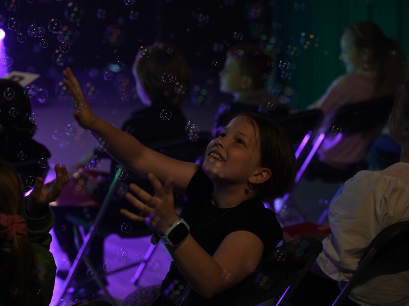 W premierze „CyberMocnych” brali udział przedstawiciele grupy TEENS (13-19 lat) oraz grupy KIDS (6-12 lat). Każda z grup wzięła udział w innym, bo dostosowanym do wieku, spektaklu. Bo „CyberMocnych” lepiej chyba określać jako spektakl niż warsztaty. Jest dym, zapachy, bańki mydlane, dioda LED, greenbox, lasery, projekcja hologramów. Wszystko po to, żeby uczestnicy nie tylko słyszeli i widzieli, ale przede wszystkim rozumieli i uczestniczyli w wydarzeniu, bo tylko to wpływa na zapamiętywanie. Projekt stawia na naukę przez doświadczenie, która jest przeżyciem, a nie przekazem.