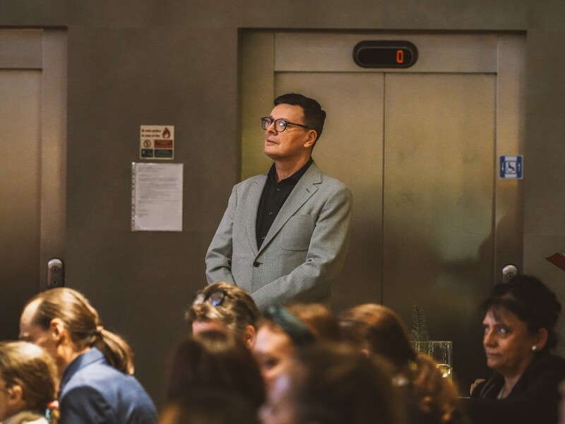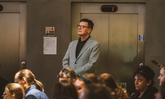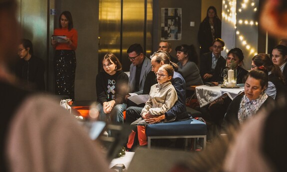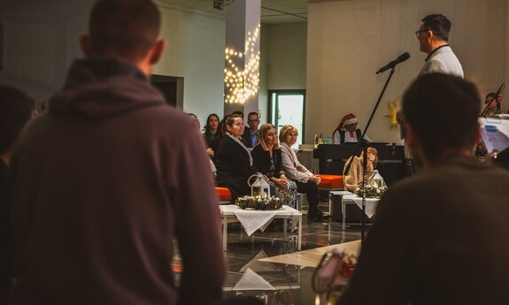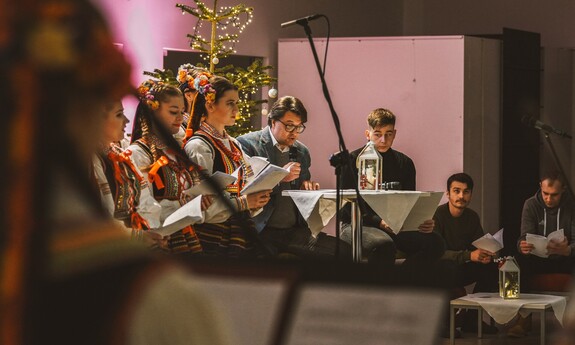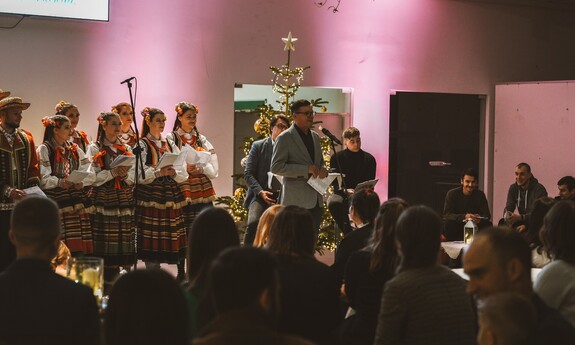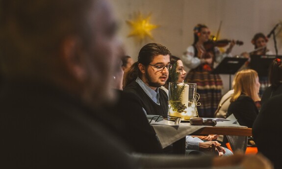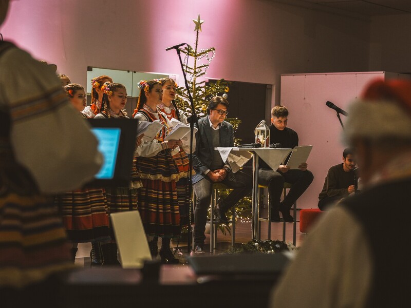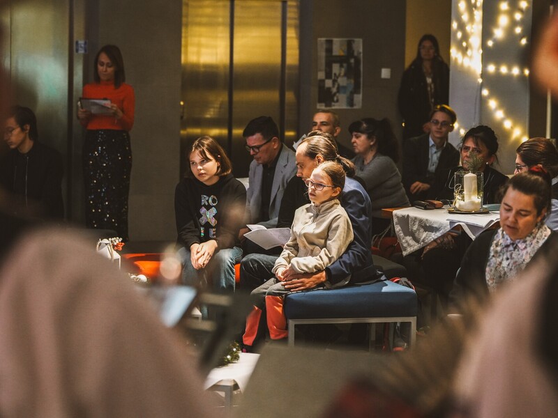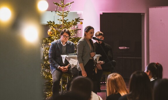 Szymon, student I roku Inżynierii Multimediów, zafascynował wszystkich recytacją wiersza Emilii Waśniowskiej "Wieczór wigilijny". Jego interpretacja wniosła do wieczoru subtelną i refleksyjną nutę.