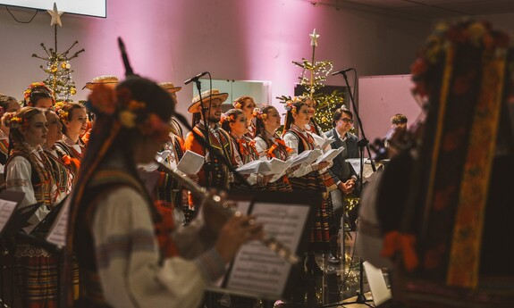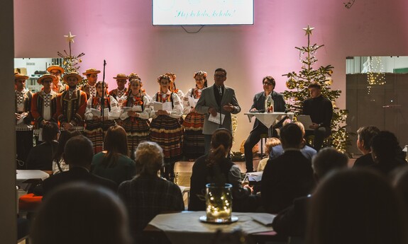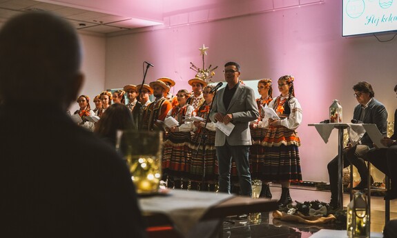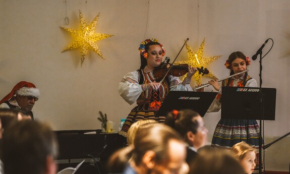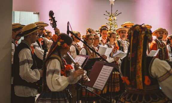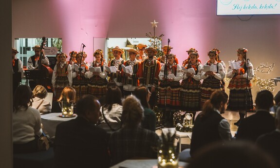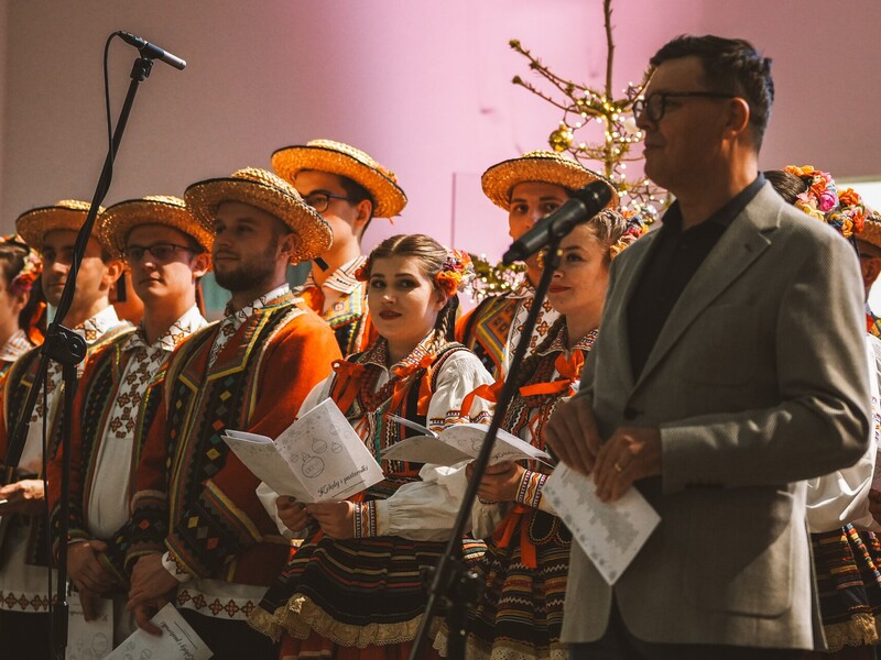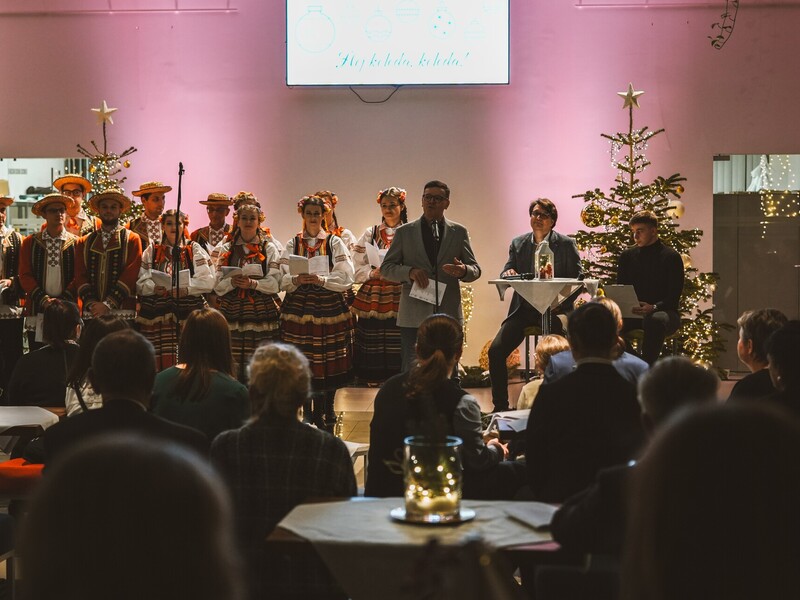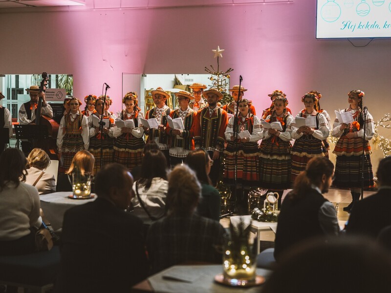 Do wspólnego kolędowania zaprosił Zespół Pieśni i Tańca Politechniki Lubelskiej pod kierownictwem Hanny Aleksandrowicz. Pierwszą kolędę rozpoczął rektor prof. Zbigniew Pater i była to „Przybieżeli do Betlejem”. Długo nie trzeba było nikogo zachęcać do dołączenia… Słowa takich kolęd, jak „Wśród nocnej ciszy”, „Bóg się rodzi”, „W żłobie leży” czy „Cicha noc” same cisnęły się na usta. Piękną oprawę muzyczną stworzyli grający na pianinie Mikołaj Naum, na skrzypcach - Iwona Adamek, a na kontrabasie Jakub Wójcik wraz z towarzyszącą im kapelą.