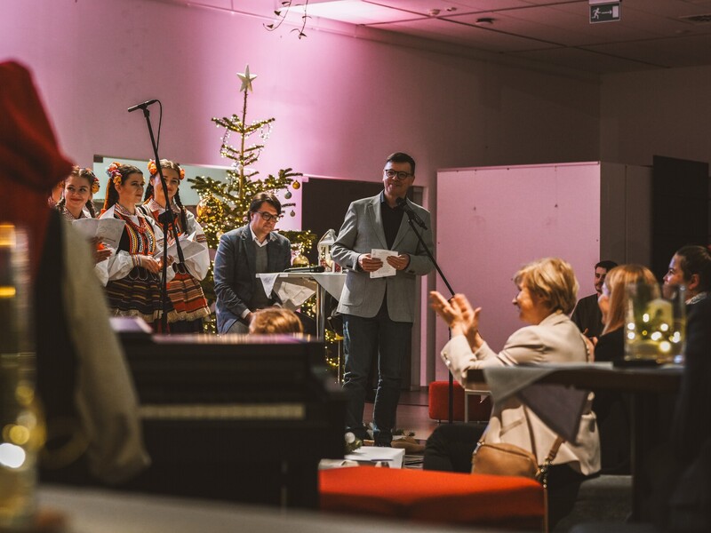 Całości dopełniała wyjątkowa i bardzo klimatyczna, bożonarodzeniowa sceneria, która zaaranżowana została przez studentów I roku architektury (dziękujemy Karolinie Czarko za koordynację prac studenckiego zespołu).
