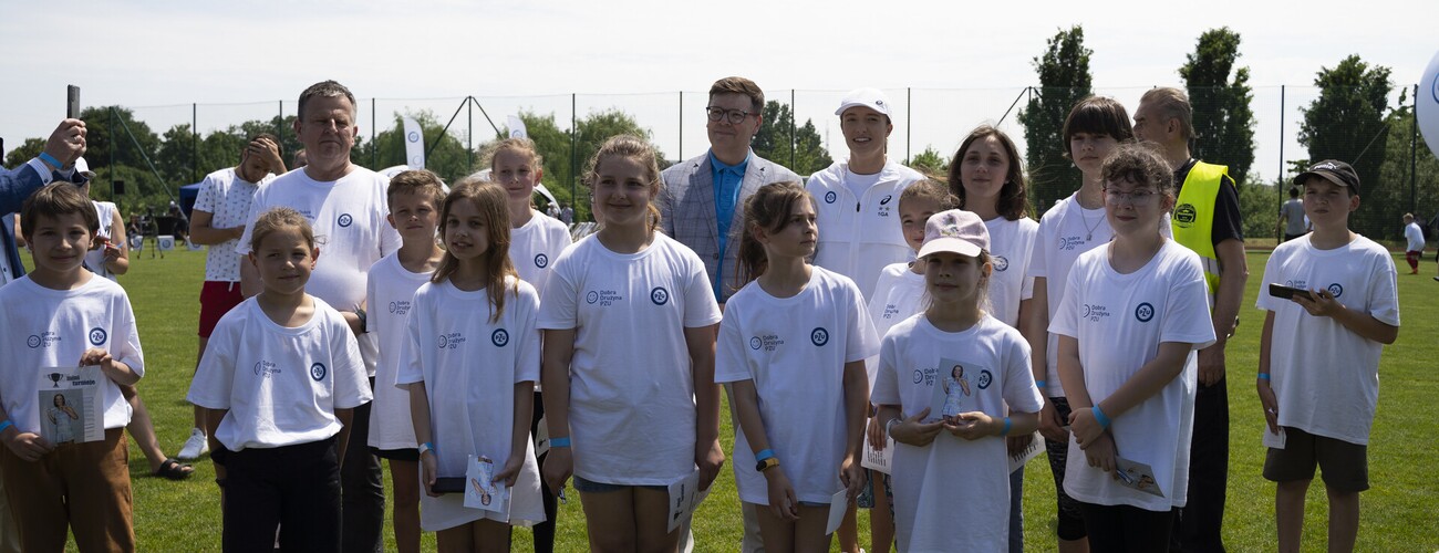 Z małymi sportowcami spotkała się kapitanka Dobrej Drużyny PZU Iga Świątek, najlepsza tenisistka na świecie. Zawodnicy mieli okazję przywitać się z nią, zrobić pamiątkowe zdjęcia i wręczyć bukiet urodzinowych kwiatów.