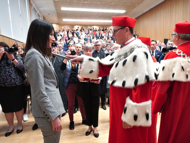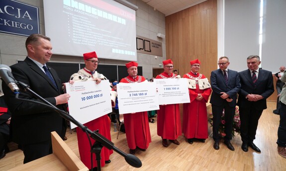 Uczestniczący w inauguracji roku akademickiego Minister Edukacji i Nauki Przemysław Czarnek przekazał Uczelni symboliczne czeki, w wysokości: