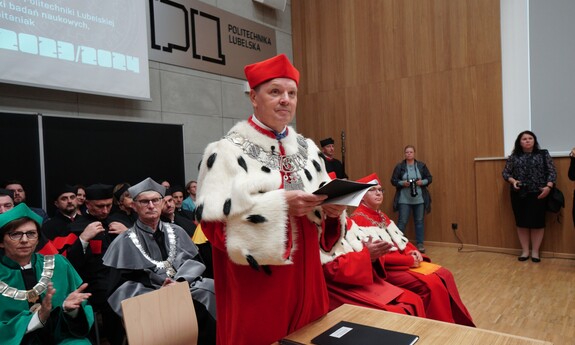 Uroczystość zakończył wykład inauguracyjny pt. „Jak sprzedać wyniki badań naukowych, czyli jak pisać artykuły”, który wygłosił w formie nagrania multimedialnego profesor Tomasz Kapitaniak, doktor honoris causa Politechniki Lubelskiej.