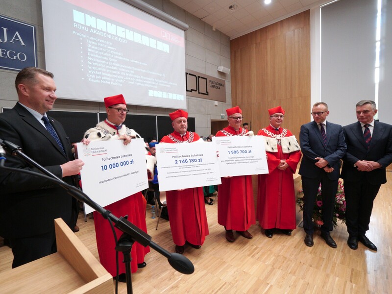 Szef MEiN podziękował pracownikom uczelni za to, że swoich imponujących osiągnięć nie zatrzymują tylko w murach politechniki. – Wy naprawdę się nimi dzielicie. I dzielicie się z innymi uczelniami lubelskimi. Dowody są dwa. Lubelska Unia Cyfrowa to projekt, który powstał dzięki Wam. Jego liderem jest Uniwersytet Medyczny, ale bez waszego wkładu, wiedzy, doświadczenia i sprawności organizacyjnej Lubelska Unia Cyfrowa by nie funkcjonowała. Z chęcią będziemy ten projekt dalej wspierać. Drugi dowód, to znakomity projekt Via Carpatia, który łączy trzy nasze politechniki i rzeczywiście łączy studentów, naukowców i tę współpracę uczelni podnosi na wysoki poziom.