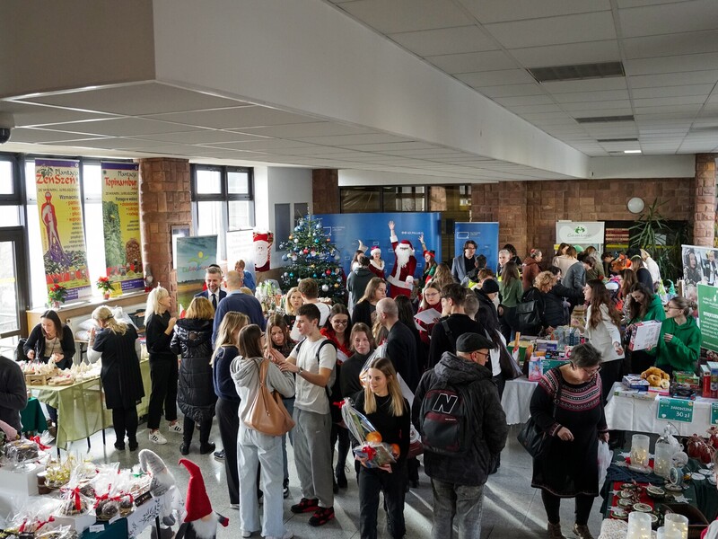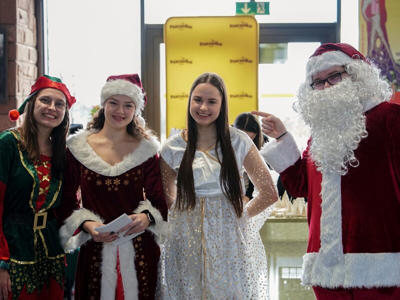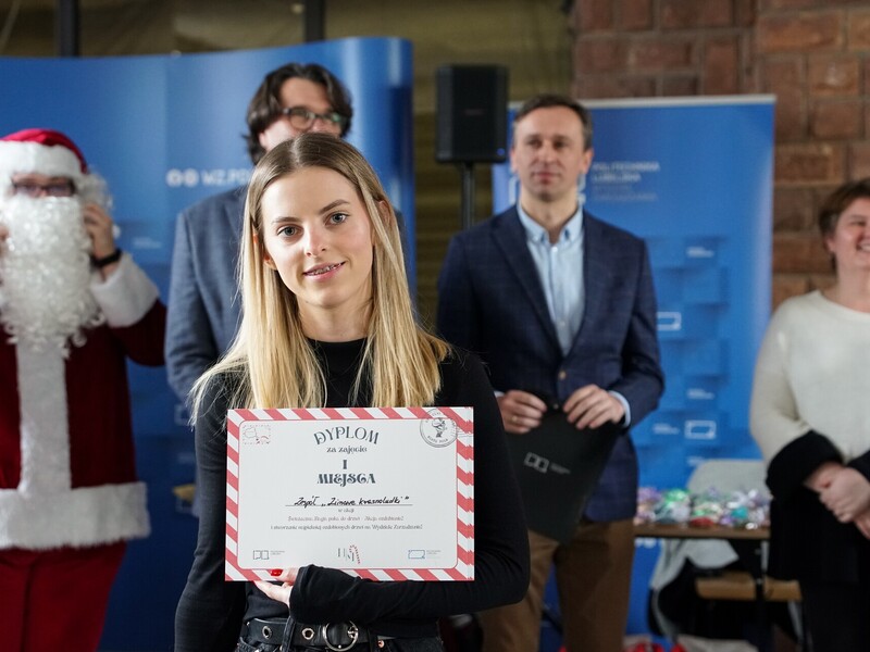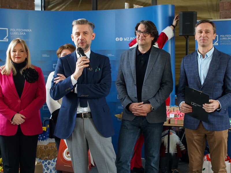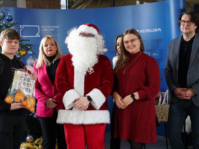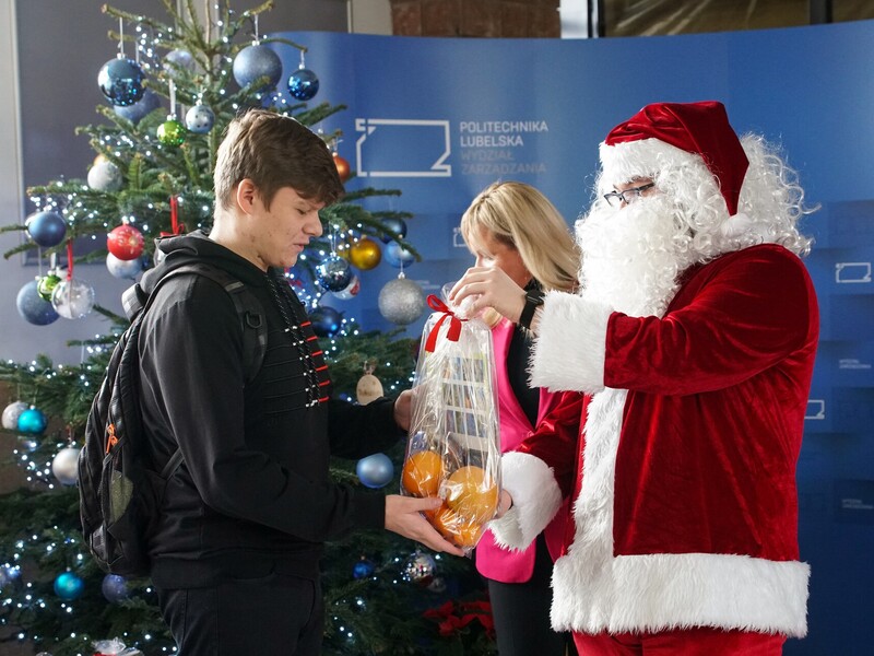 Świąteczny klimat na Wydziale Zarządzania Politechniki Lubelskiej można było poczuć już od wejścia, gdzie gości witał święty Mikołaj. Nie tylko pozował do zdjęć, ale też przybijał piątki i rozmawiał z odwiedzającymi. W tak radosnej atmosferze przebiegł Kiermasz Bożonarodzeniowy, który przyciągnął tłumy i oczarował bogactwem stoisk pełnych świątecznych atrakcji.