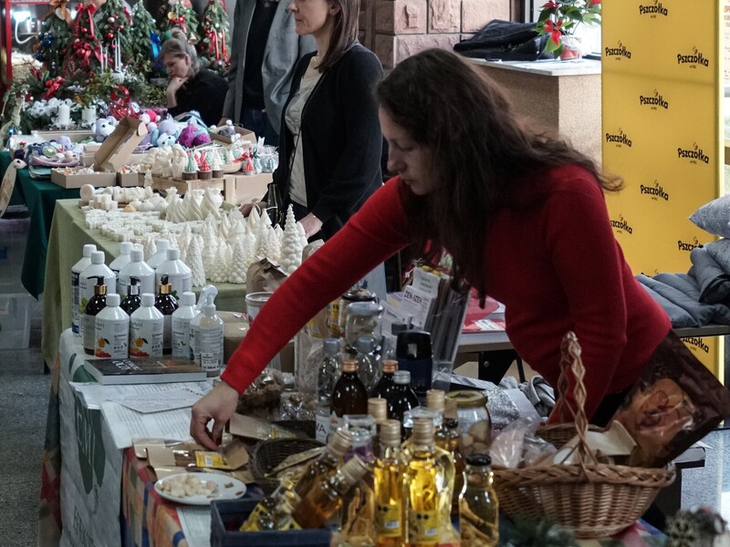 Miłośnicy rękodzieła również mieli w czym wybierać. Pani Aleksandra Mucha prezentowała szydełkowe cuda: – Wszystko ręcznie robione. Mamy maskotki, breloczki, bombki. W zeszłym roku popularne były zakładki do książek, a w tym roku wiele osób interesuje się breloczkami. Z kolei na stoisku pani Lidki Szałas można było nabyć lampiony, bombki oraz wełniane czapki: – Zrobienie jednej czapki zajmuje mi cały dzień. Na kiermaszu jestem już trzeci raz, bo bardzo mi się tu podoba.
