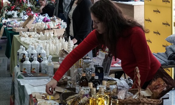 Wśród świątecznych aromatów czuć było mydełka. Jedno, o zapachu szarlotki z cynamonem, wybrała Wiktoria Nowak: – Zapachy tutaj są niesamowite – trudno się zdecydować, ale to najbardziej do mnie przemówiło. Pani Jowita Joanna Sitko znalazła natomiast fascynator, który idealnie wpisywał się w jej gust: – Uwielbiam oryginalne nakrycia głowy. Kupiłam fascynator w kolorze niebieskim, bo pasuje do mojej nowej książki.