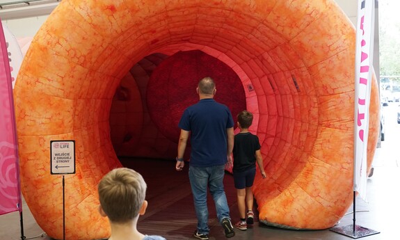 – Ciekawa atrakcja, coś innego. Można się dowiedzieć o chorobach jelita grubego i że trzeba się badać. Kolonoskopia może uratować życie – przyznaje pan Piotr, zwiedzający dmuchany model jelita 3D.
