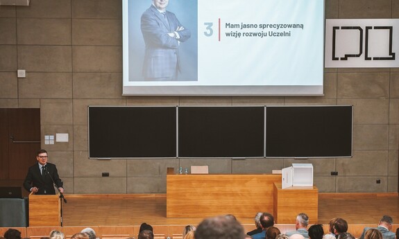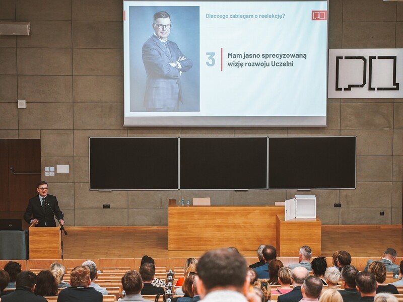 Rektor rozpoczął wystąpienie od wyjaśnienia, dlaczego zdecydował się zabiegać o reelekcję. Wśród motywów wymienił swoje bogate doświadczenie w zarządzaniu uczelnią. – Przez wiele lat byłem prorektorem ds. nauki i dziekanem wydziału, a w obecnej kadencji jestem rektorem. W tym czasie nauczyłem się, jak kierować dużymi zespołami oraz zdobyłem głęboką wiedzę na temat struktury, procesów i potrzeb uczelni – mówił rektor.