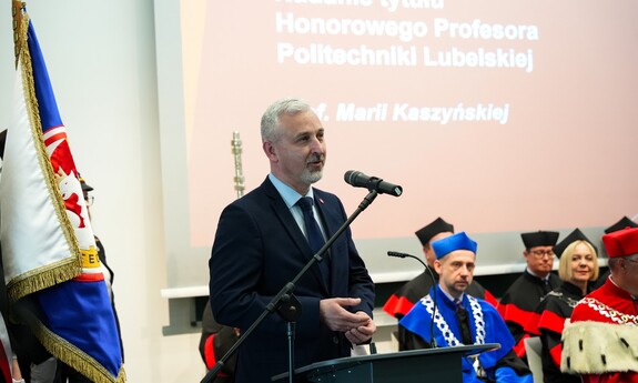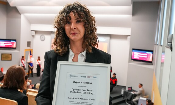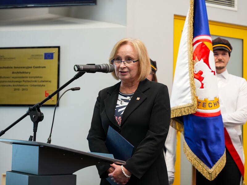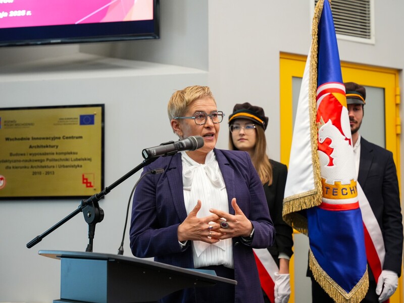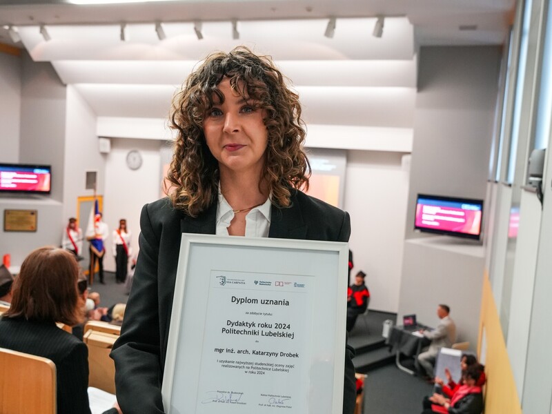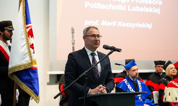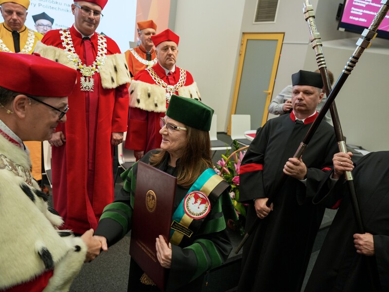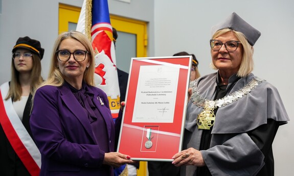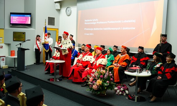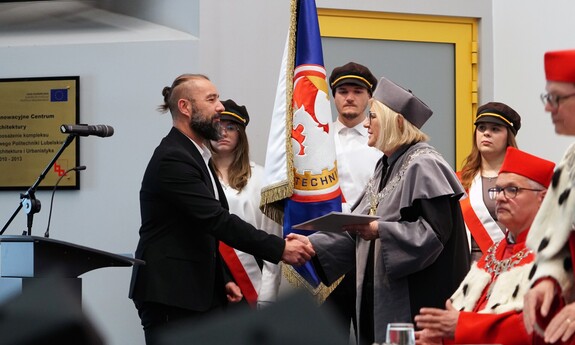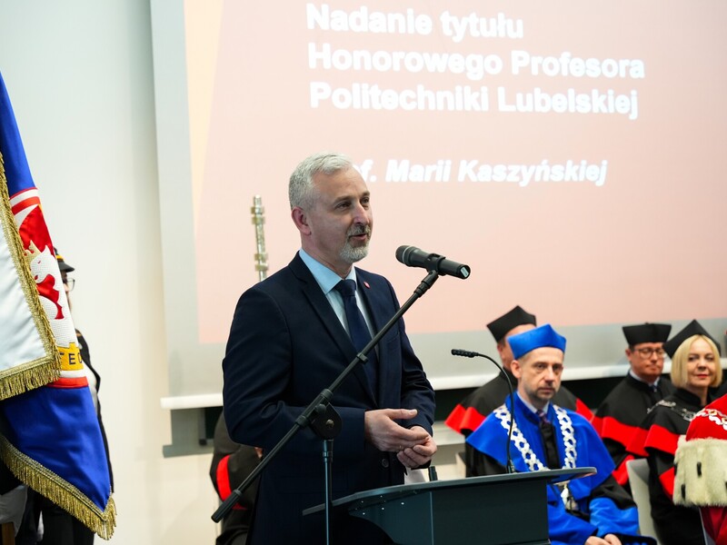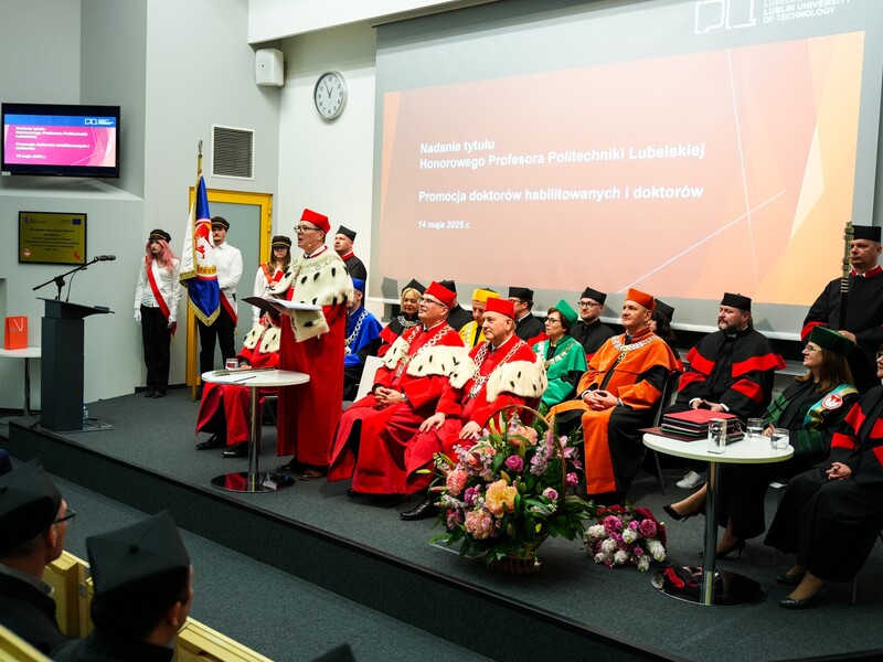 Podczas uroczystości nadano tytuł Honorowego Profesora Politechniki Lubelskiej prof. dr hab. inż. Marii Kaszyńskiej z Zachodniopomorskiego Uniwersytetu Technologicznego, ekspertce od betonów nowej generacji, w tym druku 3D z betonu.