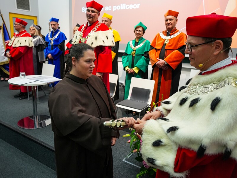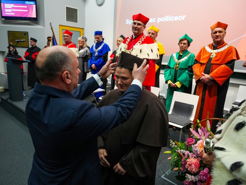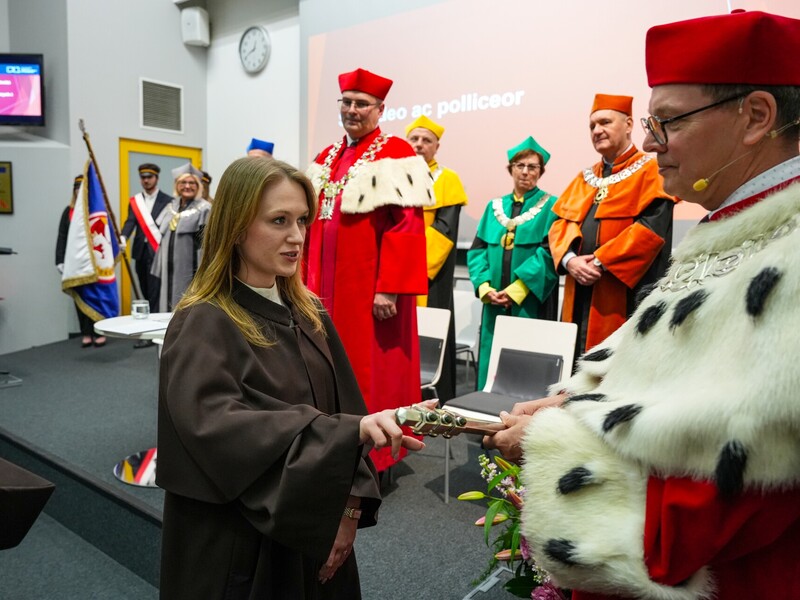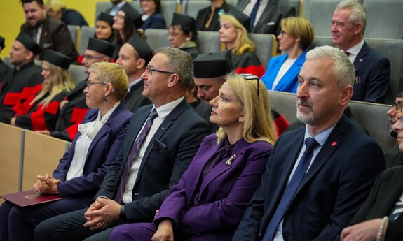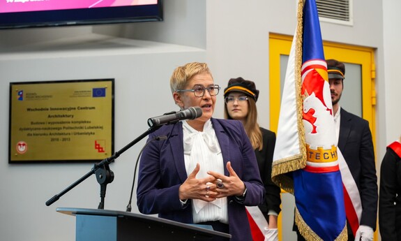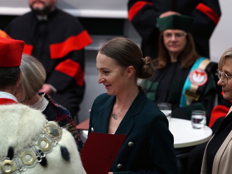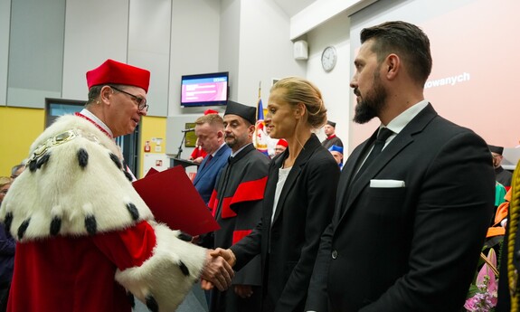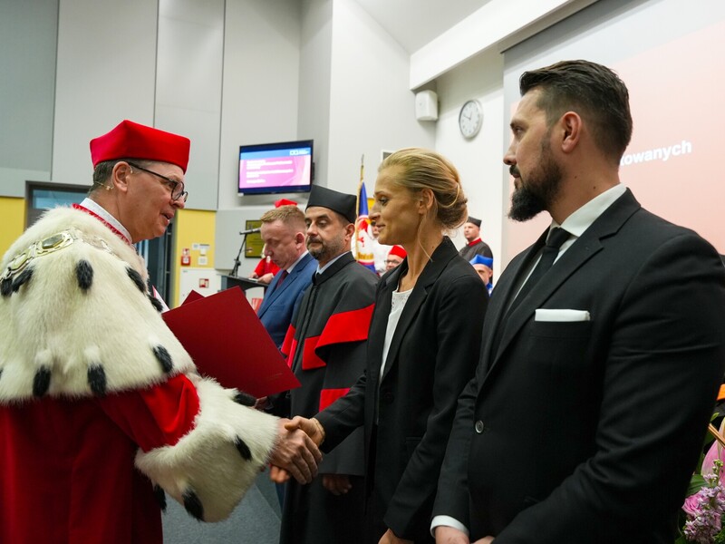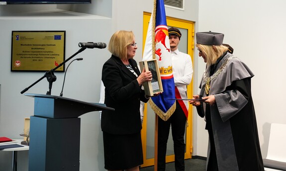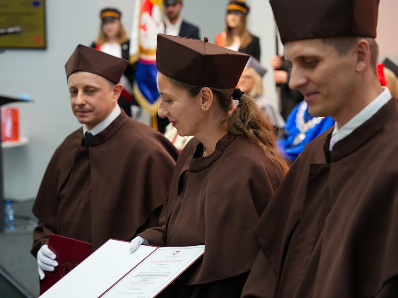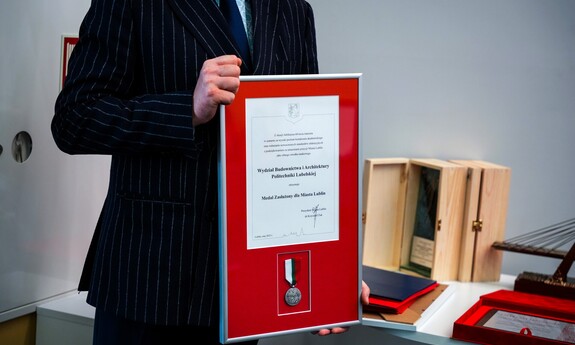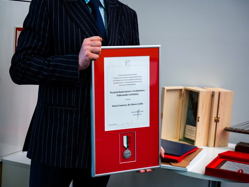 Podczas uroczystości nadano tytuł Honorowego Profesora Politechniki Lubelskiej prof. dr hab. inż. Marii Kaszyńskiej z Zachodniopomorskiego Uniwersytetu Technologicznego, ekspertce od betonów nowej generacji, w tym druku 3D z betonu.