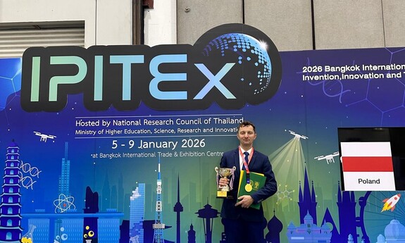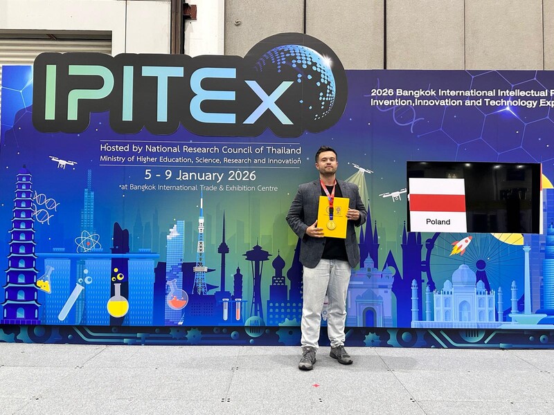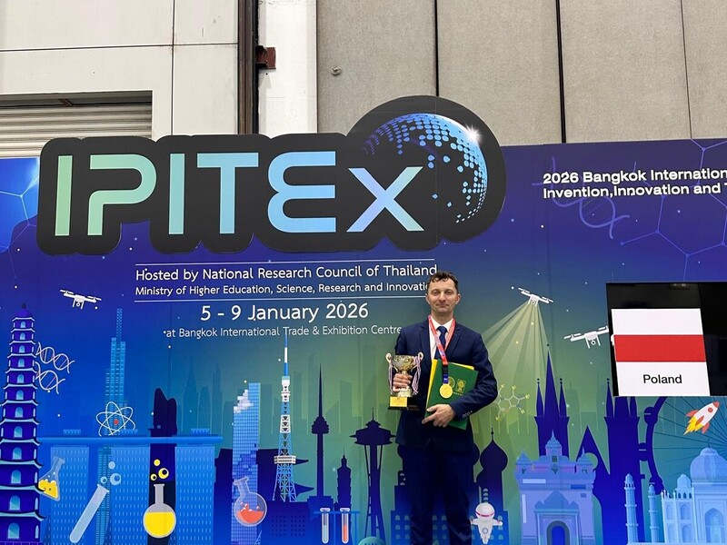 Naukowcy z Politechniki Lubelskiej odnieśli sukces podczas IPITEX 2026 - Bangkok International Intellectual Property, Invention, Innovation and Technology Exposition, która odbyła się w dniach 5 - 9 stycznia 2026 w Bangkoku (Tajlandia). Delegacja naszej Uczelni zdobyła trzy złote medale jeden srebrny oraz dwie nagrody specjalne rywalizując z setkami innowacji z całego świata.