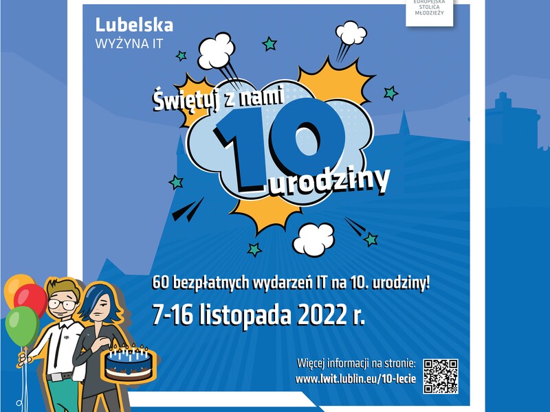 Obchody 10-lecia Lubelskiej Wyżyny IT są częścią wydarzeń związanych z otrzymaniem przez Miasto Lublin tytułu Europejskiej Stolicy Młodzieży 2023. Serdecznie zachęcamy i zapraszamy do zapoznania się ze szczegółowym programem i wzięcia udziału w wydarzeniach!
