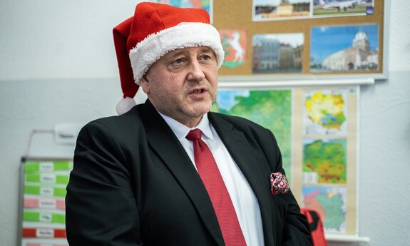 Niespodzianką dla przedszkolaków była wizyta prof. Pawła Droździela, prorektora ds. studenckich, który wcielił się w rolę Mikołaja, przynosząc plecak wypełniony małym co nieco...