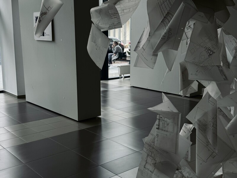 – Pierwsza to wielka chmura kalek, które unoszą się nad naszymi głowami i obrazują, ile materiału zużywamy podczas całych studiów. Kolejna to kartki formatu A4 nawleczone na żyłki. W ten sposób uzyskaliśmy dynamiczną i zwiewną formę symbolizującą drzewa. Ostatnia instalacja składa się z makiet, które umieściliśmy na ścianie. Są to prace studentów wszystkich roczników. Zobaczymy tutaj układy zabudowy, modele budynków w różnej skali, makiety wnętrz oraz te najmniejsze przedstawiające meble – opisuje Dominika Małys.