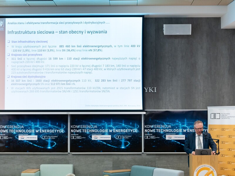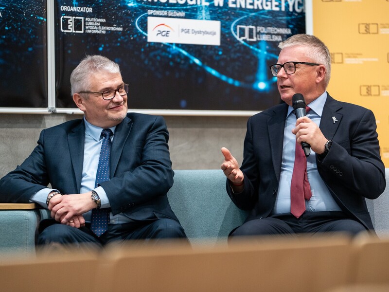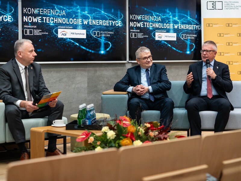 Podczas konferencji „Nowe technologie w energetyce” przedstawiono też rozwiązania opracowane przez Wydział Elektrotechniki i Informatyki Politechniki Lubelskiej. Prof. Paweł Węgierek mówił o aparaturze łączeniowej i rozdzielczej wolnej od SF6 przeznaczonej do sieci dystrybucyjnych typu smart. Dr hab. inż. Paweł Pijarski, prof. uczelni, przedstawił inteligentny system zarządzania magazynem energii w sieci niskiego napięcia, a dr hab. inż. Dariusz Zieliński, prof. uczelni – innowacyjny system magazynowania energii.