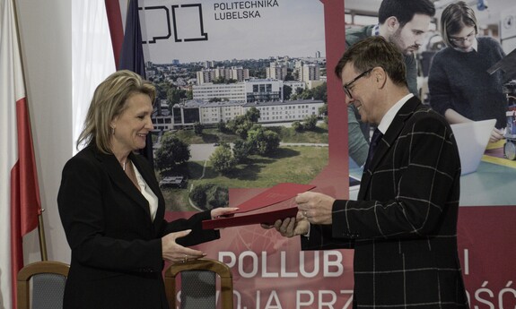 Porozumienie o współpracy podpisali w piątek, 1 grudnia br. rektor Politechniki Lubelskiej prof. Zbigniew Pater oraz dyrektor V Liceum Ogólnokształcącego im. Marii Skłodowskiej-Curie Beata Jezierska.