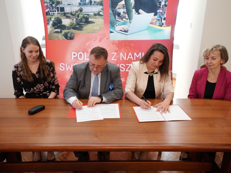 W dniu 24.04.2023 r. w sali Senatu Politechniki Lubelskiej odbyło się uroczyste podpisanie porozumienia o współpracy pomiędzy Politechniką Lubelską, reprezentowaną przez dra hab. inż. Pawła Droździela, prof. Uczelni, prorektora ds. studenckich, a VI Liceum Ogólnokształcącym im. Hugona Kołłątaja w Lublinie, reprezentowanym przez Panią dyrektor mgr Marzenę Kamińską.