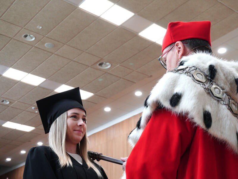 Inż. Żaneta Syczek, przewodnicząca Samorządu Studenckiego Politechniki Lubelskiej, w imieniu absolwentów wyraziła wdzięczność dla wszystkich nauczycieli i profesorów, którzy „byli i są przewodnikami oraz mentorami w podróży edukacyjnej zwanej studiami”. – Dzięki ich wiedzy, doświadczeniu i wsparciu mogliśmy rozwijać swoje zainteresowania, poszerzać horyzonty i odkrywać nowe ścieżki. Ich praca i oddanie mają ogromny wpływ na nasze sukcesy – zaznaczyła przewodnicząca.