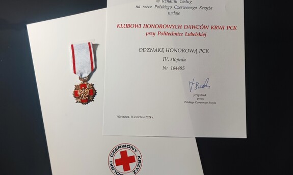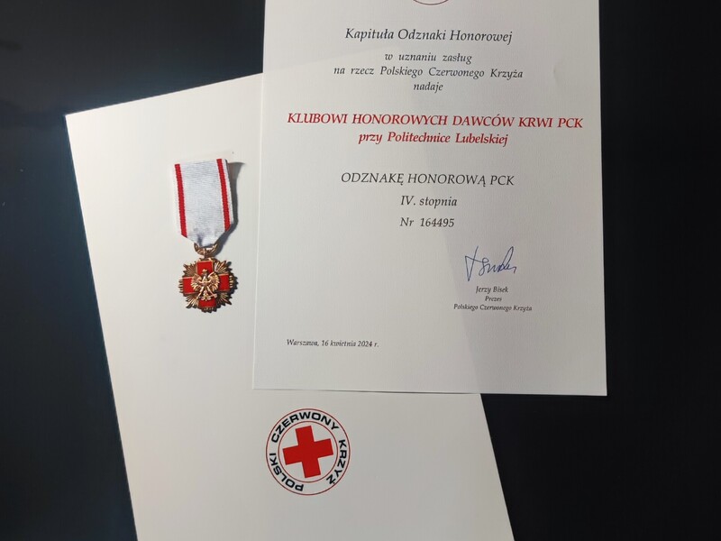 Doceniony został także Klub Honorowych Dawców Krwi PCK przy Politechnice Lubelskiej, który otrzymał prestiżową Odznakę Honorową PCK IV stopnia. Historia tej odznaki sięga niemal stu lat i jest uznawana za jedno z najważniejszych wyróżnień w strukturach Polskiego Czerwonego Krzyża. Jest nadawana jednostkom organizacyjnym PCK za szczególny wkład w rozwój stowarzyszenia. W imieniu Klubu wyróżnienie odebrał mgr Paweł Bartosik, członek zarządu klubu.