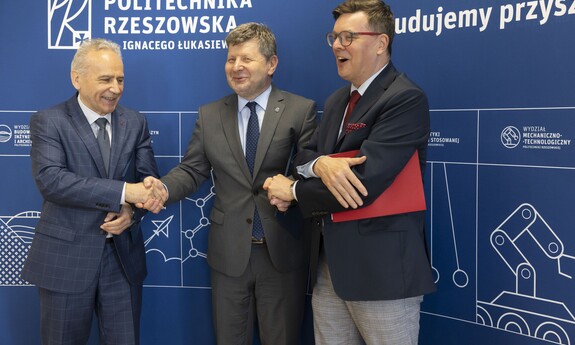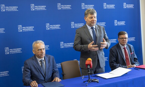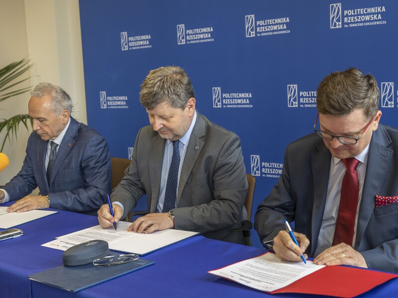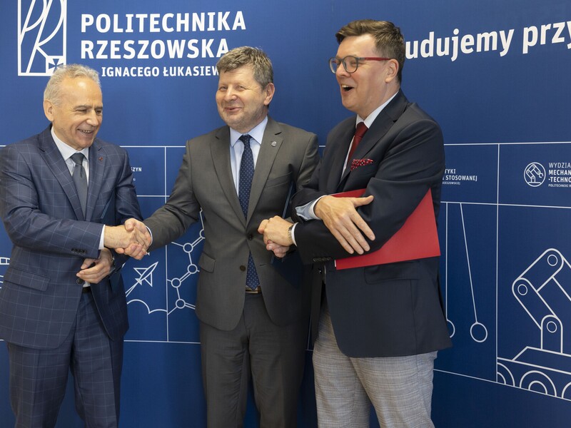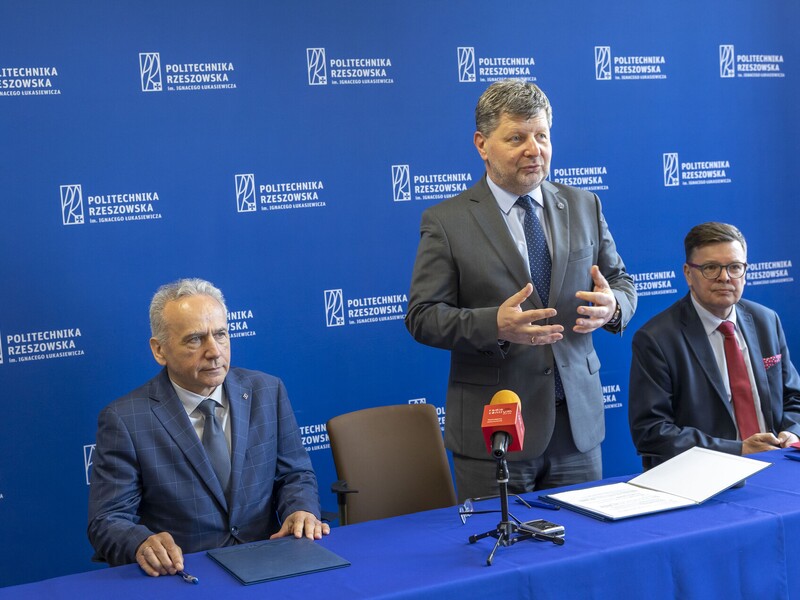 – Ostatnie miesiące jasno pokazują, że badania w zakresie technologii obronności i bezpieczeństwa są kluczowe w aspekcie sytuacji geopolitycznej. W Rzeszowie widzimy to w szczególny sposób. Dlatego też podejmujemy współpracę w zakresie badań naukowych dotyczących tych obszarów. Jestem przekonany, że rezultatem będą nowe, ważne, ale przede wszystkim polskie technologie, które uniezależnią nas od zewnętrznych, często trudnych sytuacji. Inwestycja w nasze uczelnie i nasze pomysły da naszemu krajowi niezależność od zewnętrznych dostawców w zakresie obronności i bezpieczeństwa – podkreślił prof. P. Koszelnik.
