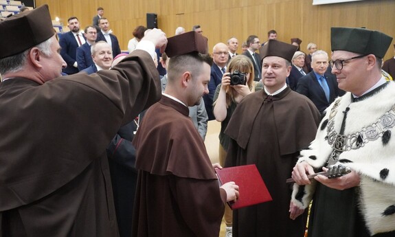 Podczas uroczystości wręczone zostały listy gratulacyjne tym osobom, którym został nadany tytuł profesora oraz nadane zostały poza Uczelnią stopnie naukowe doktora habilitowanego i doktora.
