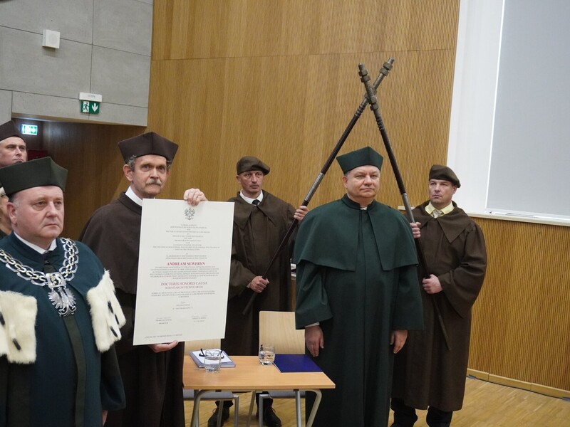 W wygłoszonej podczas uroczystości laudacji prof. Tomasz Sadowski, kierownik Katedry Mechaniki Ciała Stałego Politechniki Lubelskiej podkreślił znaczenie wieloletnich kontaktów prof. Andrzeja Seweryna dla Politechniki Lubelskiej: – Współpraca Profesora z Wydziałem Mechanicznym trwa już blisko 20 lat. Obejmuje ona organizację wspólnych konferencji, realizację projektów badawczych czy udział w postępowaniach awansowych naszych pracowników. Profesor był recenzentem o nadanie tytułu profesora , a także w dwóch przewodach doktorskich. Opiniował jedną monografię dla naszego wydawnictwa.
