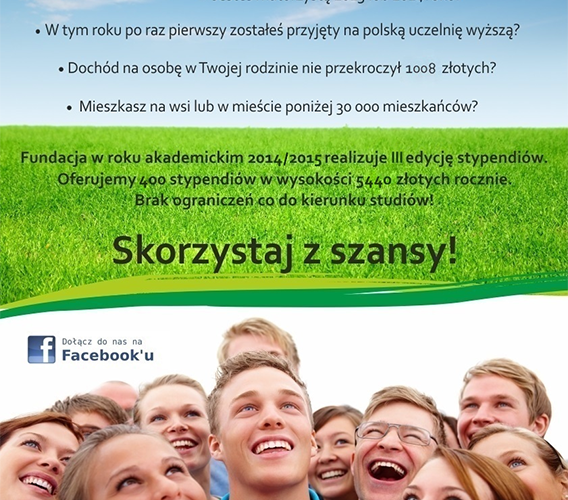 Fundacja Edukacyjna im. Jerzego Juzonia organizuje III edycję stypendiów dla młodzieży. W roku akademickim 2014/2015 Fundacja zamierza przyznać 400 stypendiów wypłacanych w 10 miesięcznych ratach po 544zł.