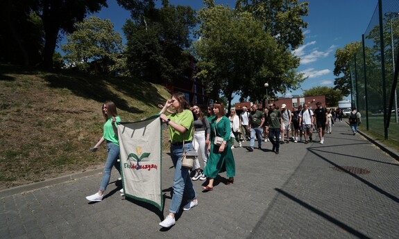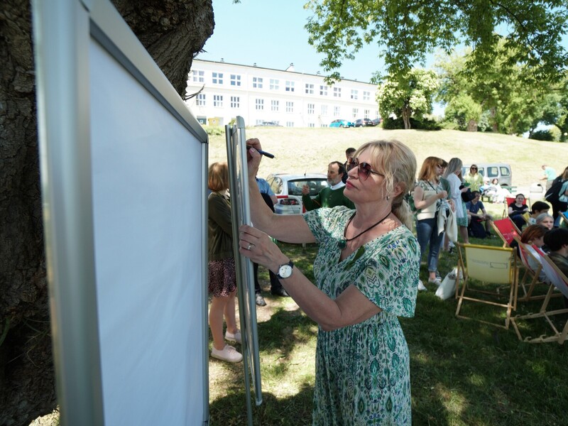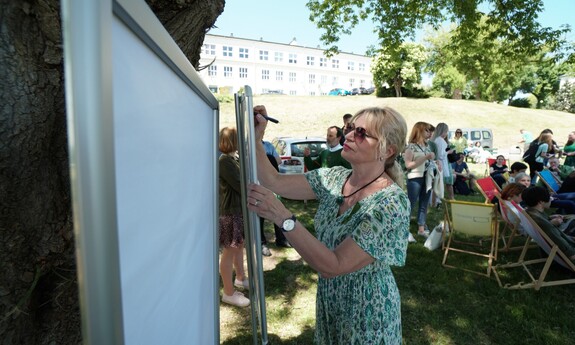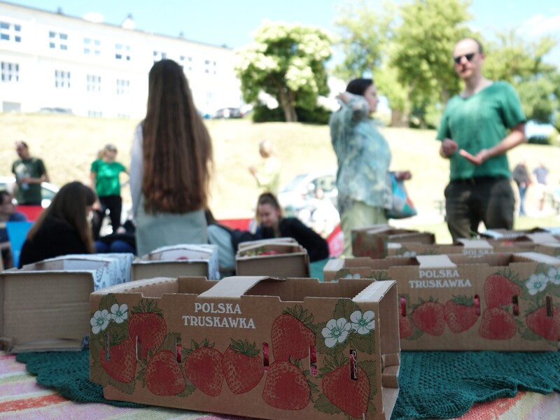 Po prezentacjach wszyscy udali się na tereny zielone, gdzie czekały leżaki i ekologiczne truskawki. Najpierw jednak uczestnicy wydarzenia utrwaleni zostali na zdjęciu, jak tworzą zieloną wstążkę w ramach kampanii Zielona Wstążka #DlaPlanety.