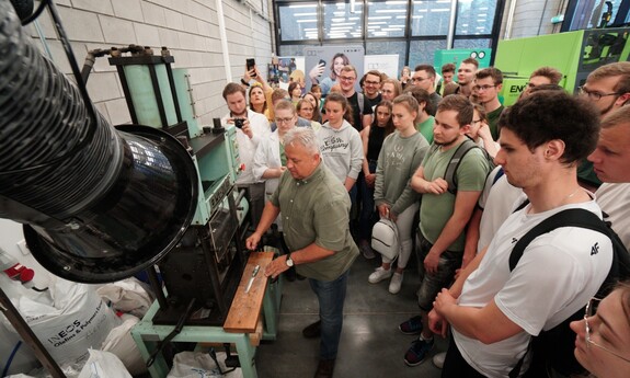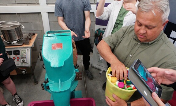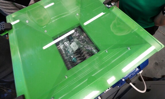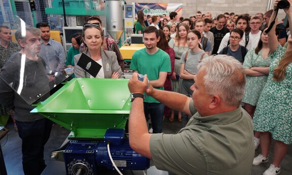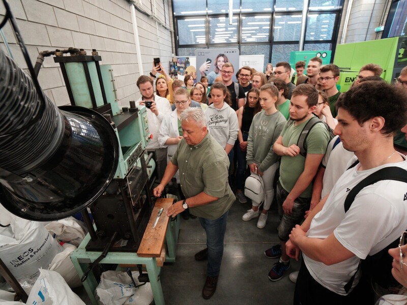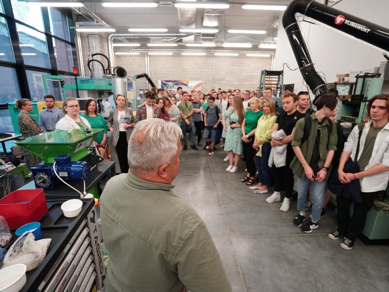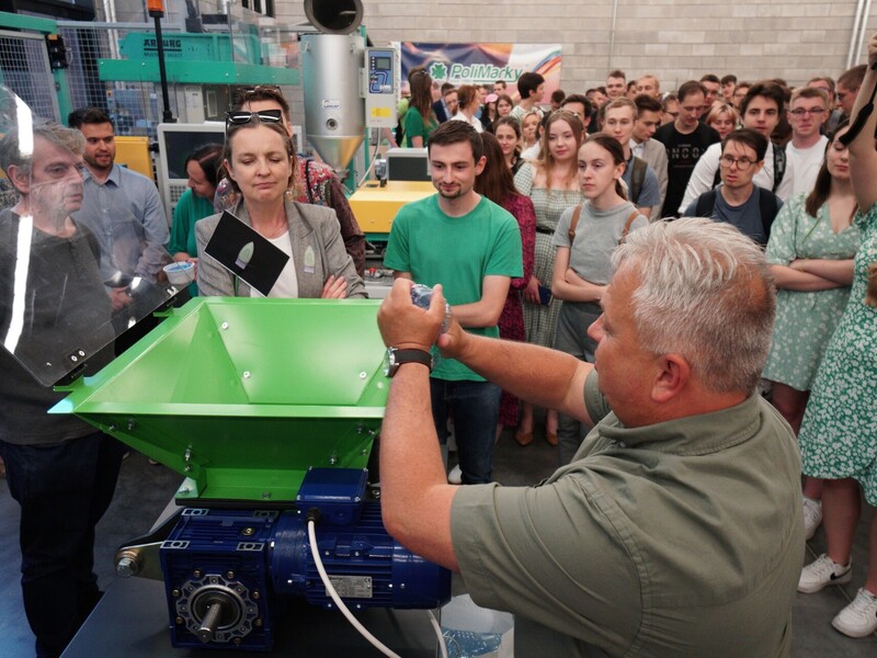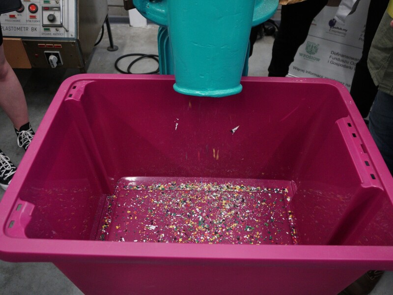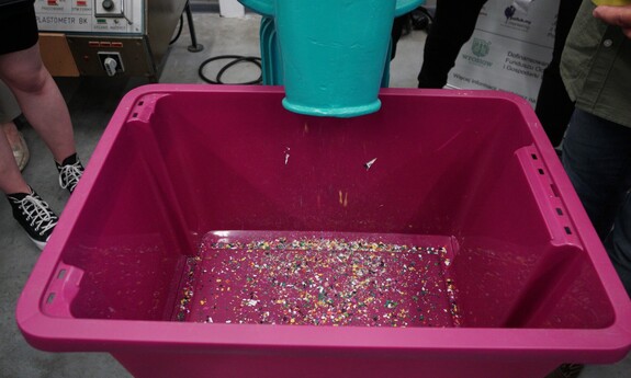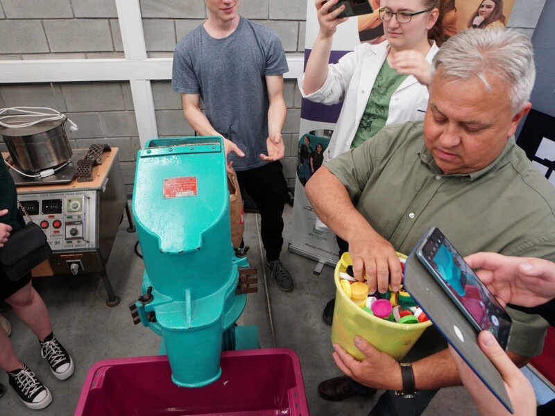 Pokaz obejmował prezentację procesów wprowadzenia odpadów tworzywowych do ponownego obiegu. – Pokazaliśmy recykling materiałowy polegający na rozdrabnianiu nożowym zakrętek polipropylenowych oraz rozdrabnianiu dwuwałowym butelek PET. Otrzymany recyklat został ponownie przetworzony w procesie wtryskiwania. W ten sposób powstały żetony do wózków sklepowych – informuje prof. Tomasz Garbacz z Katedry Technologii i Przetwórstwa Tworzyw Polimerowych.