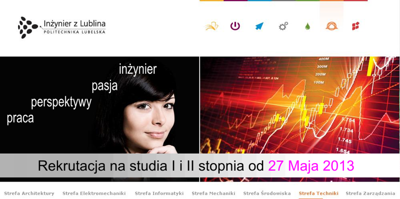 Jeśli chcesz dołączyć do grona studentów Politechniki Lubelskiej, uzyskać tytuł zawodowy inżyniera, licencjata lub magistra oraz zwiększyć swoje szanse na rynku pracy w przyszłości - nie zwlekaj - zapoznaj się z kierunkami, na które możesz zdawać oraz harmonogramem rekrutacji na studiach I i II stopnia w roku akademickim 2013/2014.