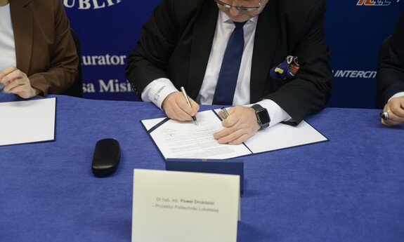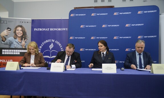 Będziemy wspólnie tworzyć Ogólnopolską Olimpiadę Zawodową pn. ,,Rok przed dyplomem’’. Oficjalne podpisanie porozumienia o współpracy pomiędzy Lubelskim Samorządowym Centrum Doskonalenia Nauczycieli, naszą uczelnią, Gminą Miasta Lublin – Zespołem Szkół Energetycznych, a PKP Intercity odbyło się 24 listopada 2023 r. w Zespole Szkół Transportowo-Komunikacyjnych im. Tadeusza Kościuszki.