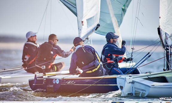 – Wszystkie załogi startują jednocześnie z linii startu wyznaczonej statkiem komisji sędziowskiej oraz boją zwaną „pinem”. Linia startu powinna być wyznaczona prostopadle do kierunku wiatru. Następnie zawodnicy mają za zadanie wykonać dwa lub trzy okrążenia wokół boi ustawionych na akwenie regatowym. Trzeba żeglować pod wiatr w kierunku „górnej boi” i z wiatrem w kierunku „dolnej boi”. Dany wyścig wygrywa ta załoga, która przekroczy linię mety jako pierwsza. Nad prawidłowym przebiegiem wyścigu czuwa komisja sędziowska znajdująca się na statku przy linii startu – tak przebieg zawodów opisuje Łukasz Wójcik z Yacht Club PL.
