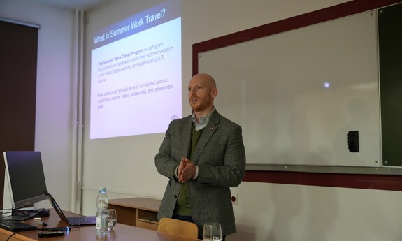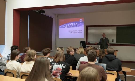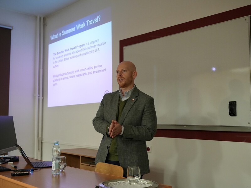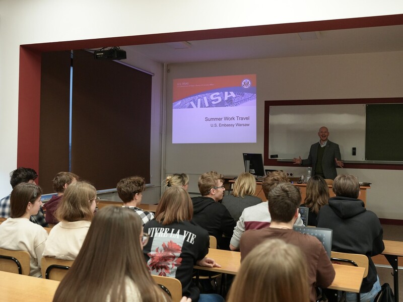 Konsul USA, Jonathan Brandt zachęcał studentów, żeby brali udział w wymianie kulturowej J1 - programach płatnych praktyk i staży wakacyjnych w USA. Mówił też o możliwościach, jakie daje Program Fulbrighta – największy program wymiany naukowej i kulturowej między Stanami Zjednoczonymi a innymi krajami.