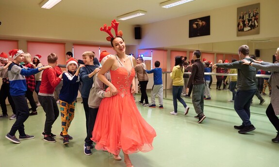 W poniedziałek, 4 grudnia, studio taneczne Politechniki Lubelskiej zamieniło się w królestwo tańca, śmiechu i świątecznych zabaw. Uczniowie i nauczyciele ze Szkoły Podstawowej Specjalnej nr 26 w Lublinie bawili się razem z tancerzami Formacji Tańca Towarzyskiego Politechniki Lubelskiej GAMZA i wolontariuszami Stowarzyszenia Miłośników Tańca w Lublinie podczas 33. Tanecznych Spotkań Mikołajkowo-Gwiazdkowych.