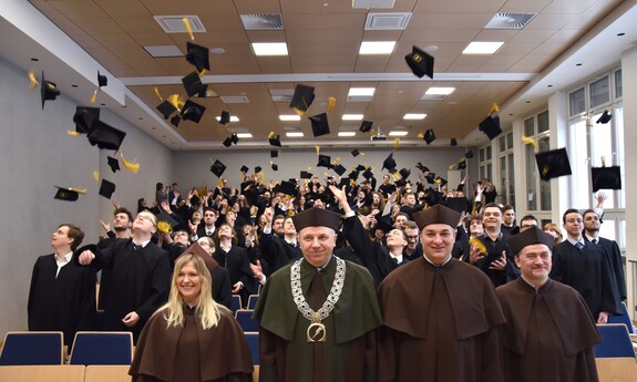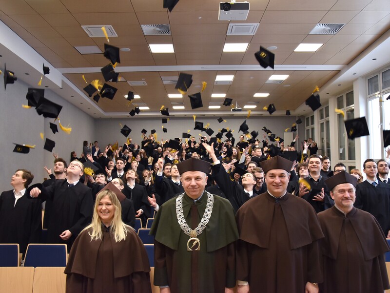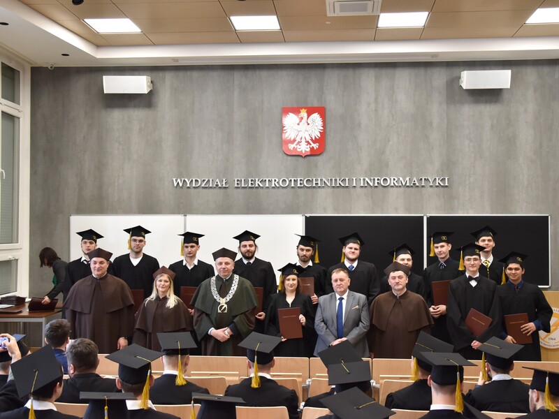 9 marca 2023r. absolwenci kierunków elektrotechnika oraz informatyka po trzech i pół roku studiów uroczyście zakończyli kształcenie na studiach pierwszego stopnia. Ponad 250 nowych inżynierów odebrało z rąk Prorektora ds. studenckich dr. hab. inż. Pawła Droździela, prof. uczelni oraz Dziekana Wydziału Elektrotechniki i Informatyki dr. hab. inż. Pawła Węgierka, prof. uczelni dyplomy ukończenia studiów.
