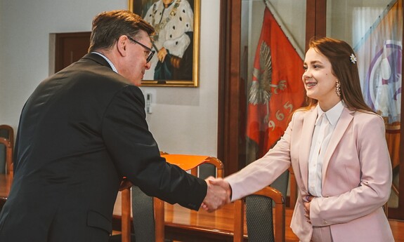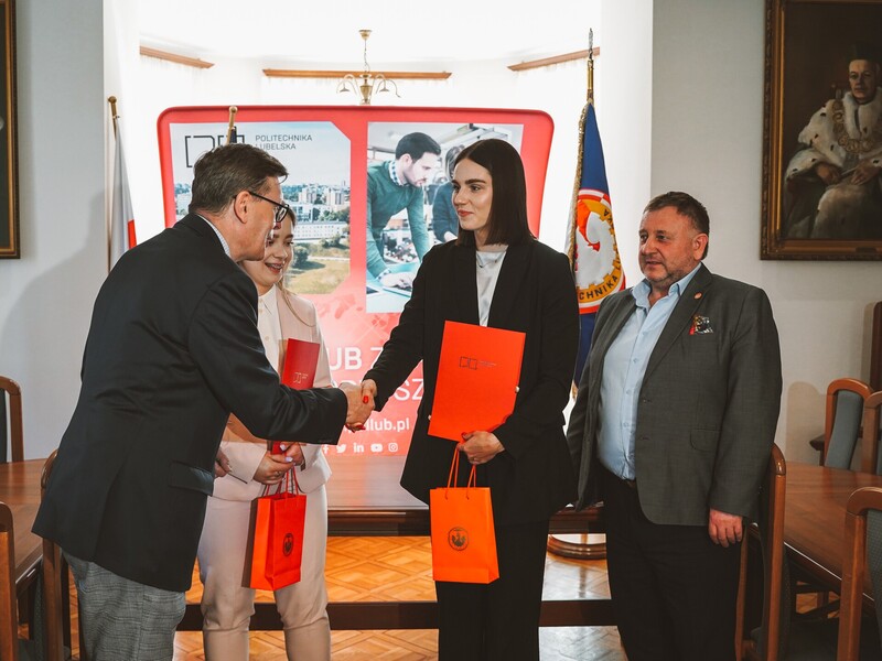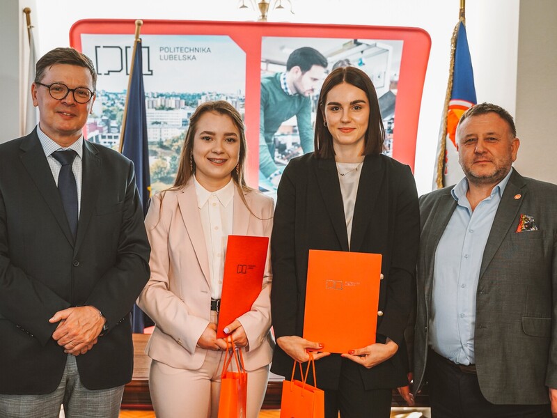 Rektor prof. Zbigniew Pater i prorektor ds. studenckich prof. Paweł Droździel spotkali się we czwartek 12 kwietnia ze studentkami, które w roku akademickim 2023/2024 otrzymały stypendium Ministra Nauki i Szkolnictwa Wyższego. Aleksandra Kozłowska i Monika Romaszko mogą pochwalić się wybitnymi osiągnięciami w dziedzinie nauki i sportu.