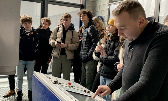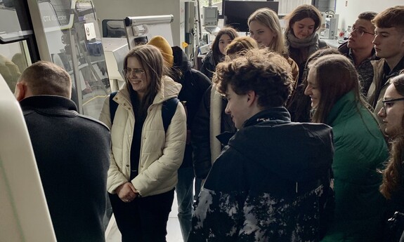 Kolejnym punktem wycieczki, była wizyta w laboratorium w budynku Centrum Informacji Naukowo - Technicznej Politechniki Lubelskiej. W Rdzewiaku uczestnicy mieli okazję zobaczyć kilka urządzeń działających w praktyce, m.in. cięcie strumieniem wody. Tą innowacyjną metodę obróbki materiału zaprezentował mgr inż. Michał Leleń.