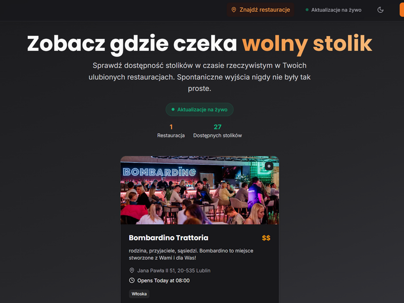 – Na własnej skórze przekonaliśmy się, jak trudno spontanicznie znaleźć wolny stolik. Byliśmy w czterech restauracjach i wszystkie miały zajęte miejsca. Dopiero w piątej zostaliśmy. Ta sytuacja stała się impulsem do stworzenia narzędzia, które pozwoli klientom sprawdzić dostępność miejsc w lokalach w czasie rzeczywistym – przyznaje Przemysław Kobylas, student na kierunku sztuczna inteligencja w biznesie na Politechnice Lubelskiej.