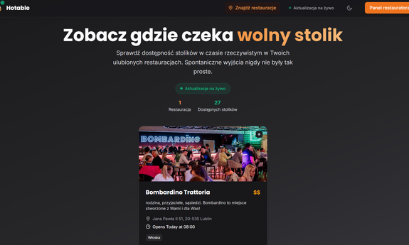 Nie ma nic bardziej frustrującego niż głód połączony z bezskutecznym szukaniem wolnego stolika. Właśnie taka sytuacja stała się impulsem dla trójki studentów: Przemysława Kobylasa i Kornela Smolińskiego z Politechniki Lubelskiej oraz Szymona Kryka z Akademii Leona Koźmińskiego, do stworzenia Hotable, aplikacji mobilnej, która pokazuje w czasie rzeczywistym dostępność miejsc w restauracjach.