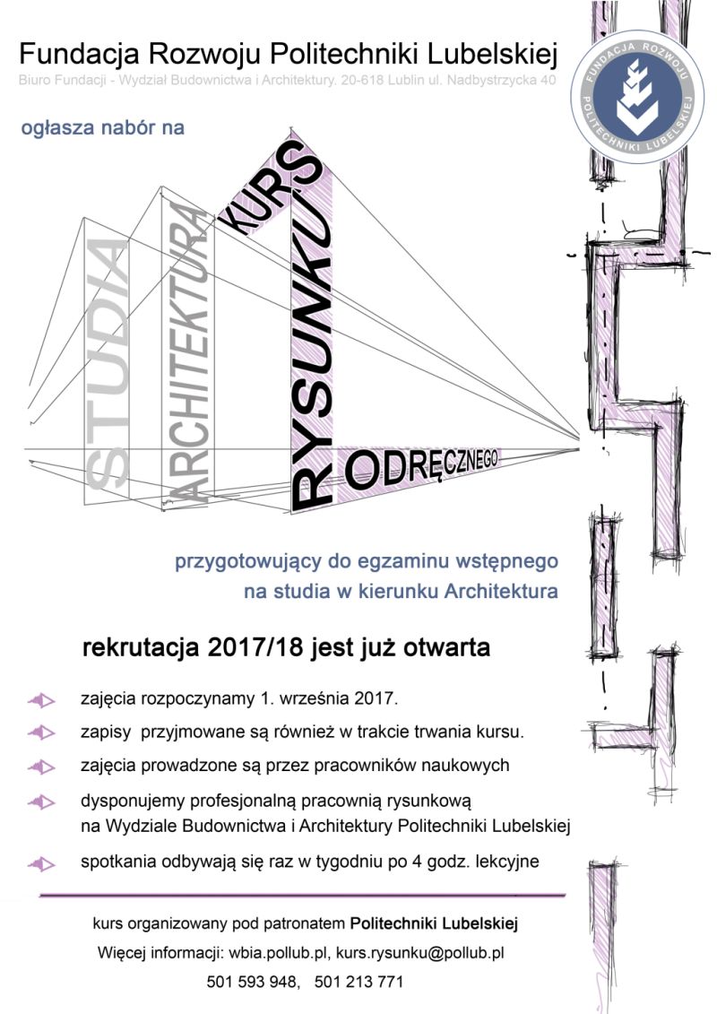 Fundacja Rozwoju Politechniki Lubelskiej ogłasza nabór na kurs rysunku odręcznego. Jest to przygotowanie do egzaminu wstępnego na studia na kierunku Architektura.